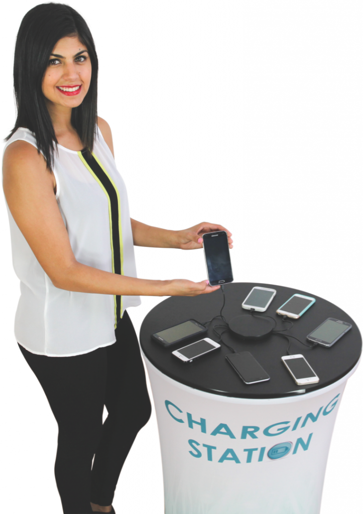 There are lots of creative ways to display a charging table and have it fit in with your wedding décor. You can choose to rent a phone charging station, or go the DIY route. When you rent a phone charging station from Wenning Branding you will get to customize the stretch fabric that encloses the charging station. The design can be anything from using your wedding logo or you can include your wedding hashtag. The options are endless! After your big day, you can keep the fabric and create a wonderful keepsake such as a blanket to remember your special day.